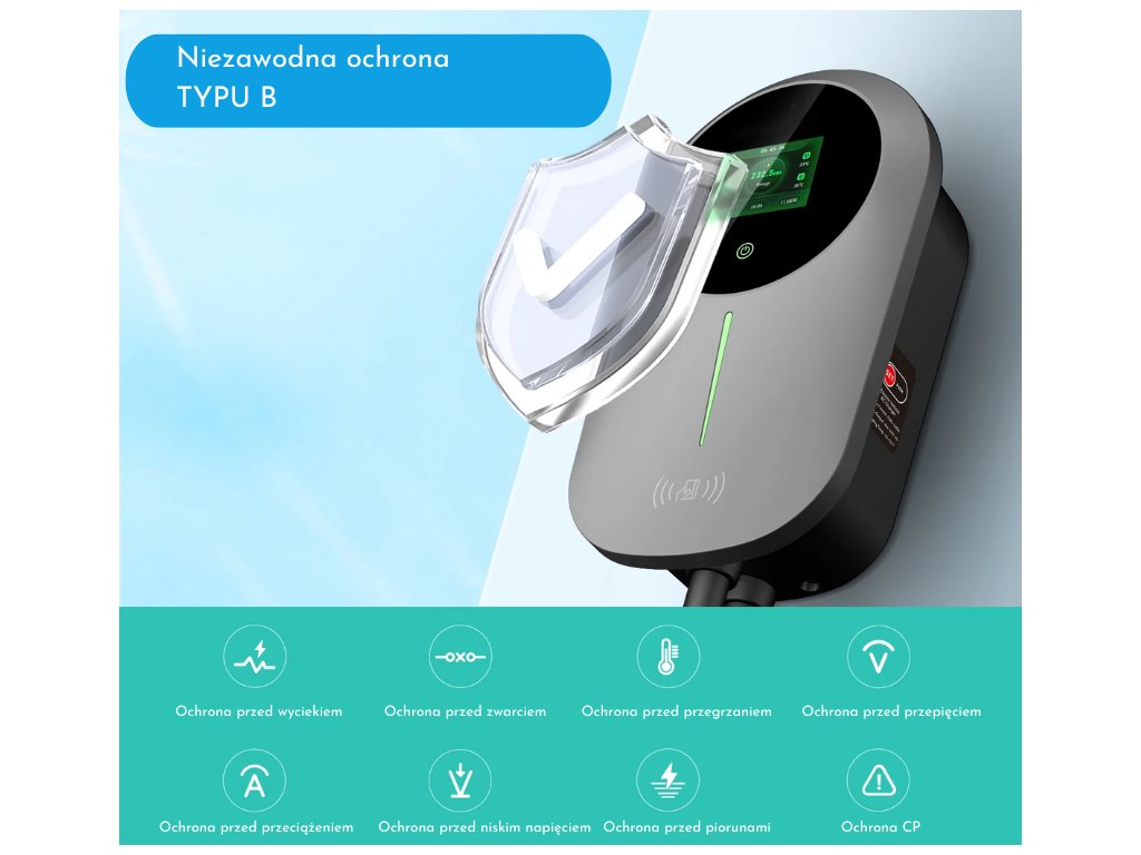 - Bezpieczny WallBox z ochroną prądową klasy B