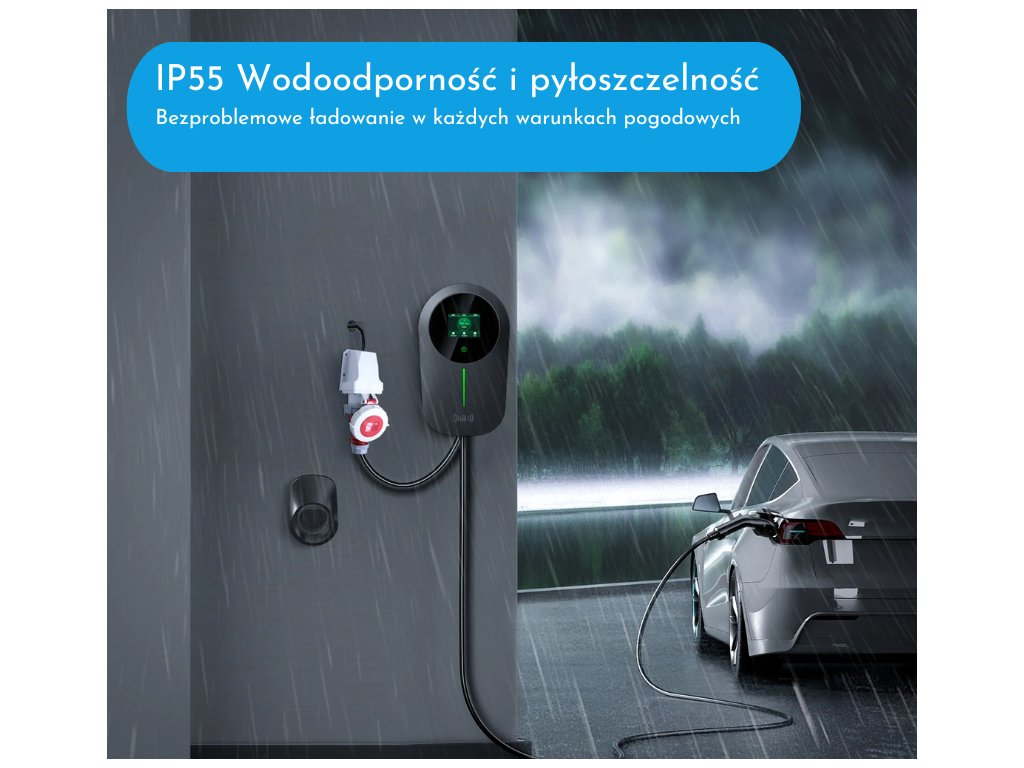 - Kompatybilność z 99% samochodów elektrycznych i hybryd plug-in