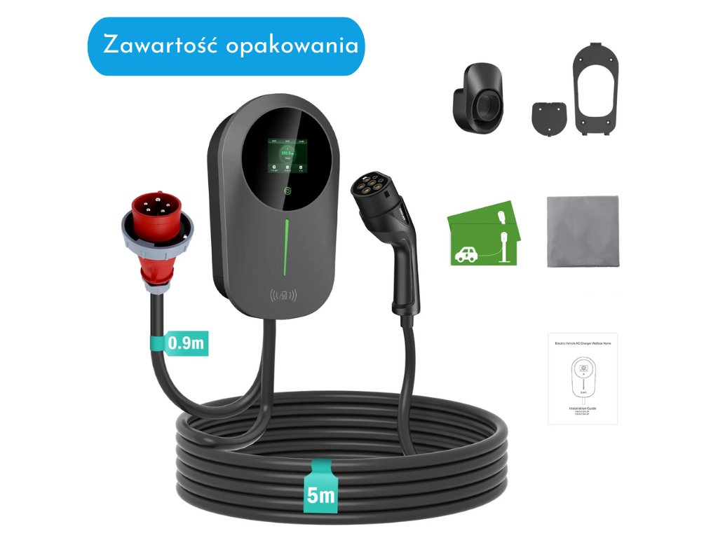 W zestawie znajdziesz profesjonalny uchwyt na kabel ładujący, który doskonale chroni końcówkę kabla przed wodą, kurzem i innymi zanieczyszczeniami. Na tym uchwycie możesz również nawinąć kabel ładujący, co zapobiega jego plątaniu się na ziemi, eliminując ryzyko uszkodzeń czy nadmiernego zużycia. W zestawie znajduje się również uchwyt ścienny i cały niezbędny materiał montażowy, dzięki któremu możesz zamontować WallBox na ścianie według swoich potrzeb. Dodatkowo w opakowaniu znajdziesz antystatyczną ściereczkę, dwie karty RFID oraz prostą instrukcję obsługi, aby uruchomienie Twojego WallBoxa było szybkie i wygodne.