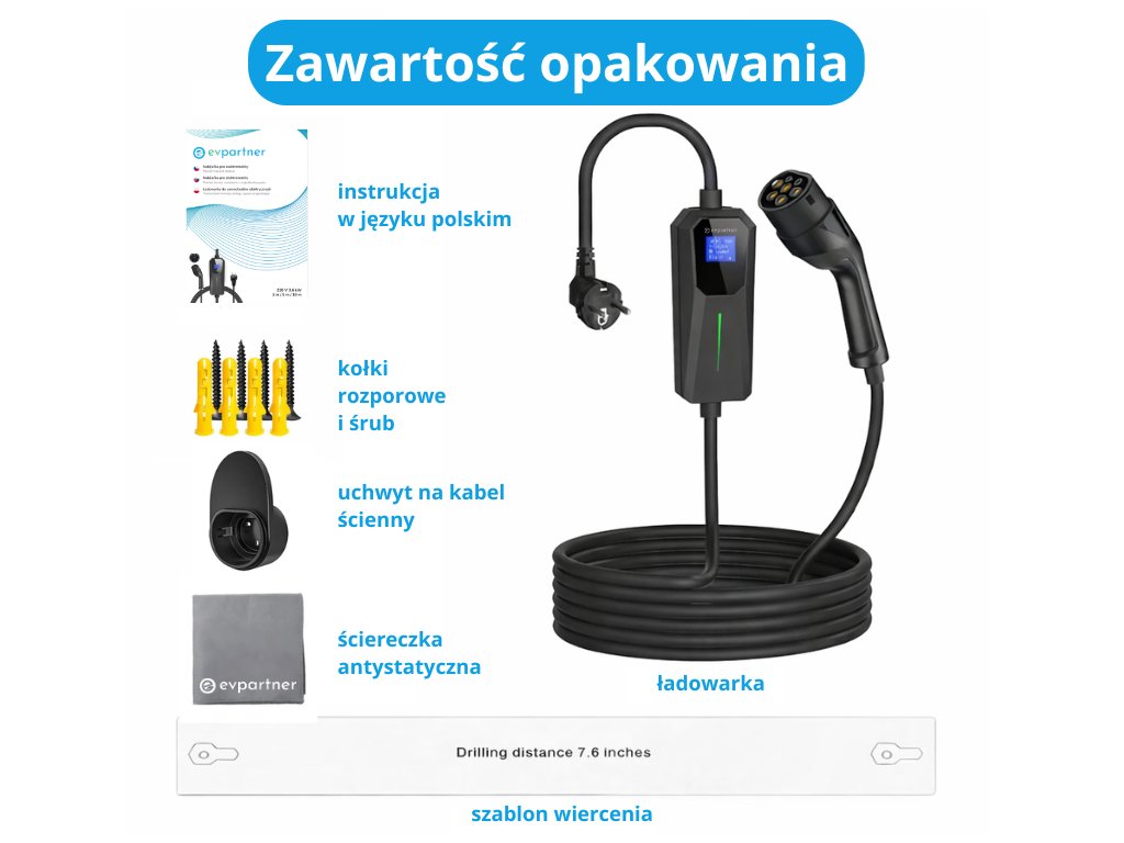 Dzięki kompaktowym rozmiarom możesz mieć jedną ładowarkę zawsze przy sobie, a drugą na działce lub w garażu. Dla lepszej organizacji ładowania możesz ją przymocować do ściany za pomocą kołków rozporowych, aby kabel nie leżał na podłodze i nie brudził się. Jest to wyjątkowo opłacalne rozwiązanie, jeśli chcesz szybko, bezpiecznie i wygodnie ładować swój pojazd elektryczny lub hybrydowy plug-in zarówno w domu, jak i w podróży.